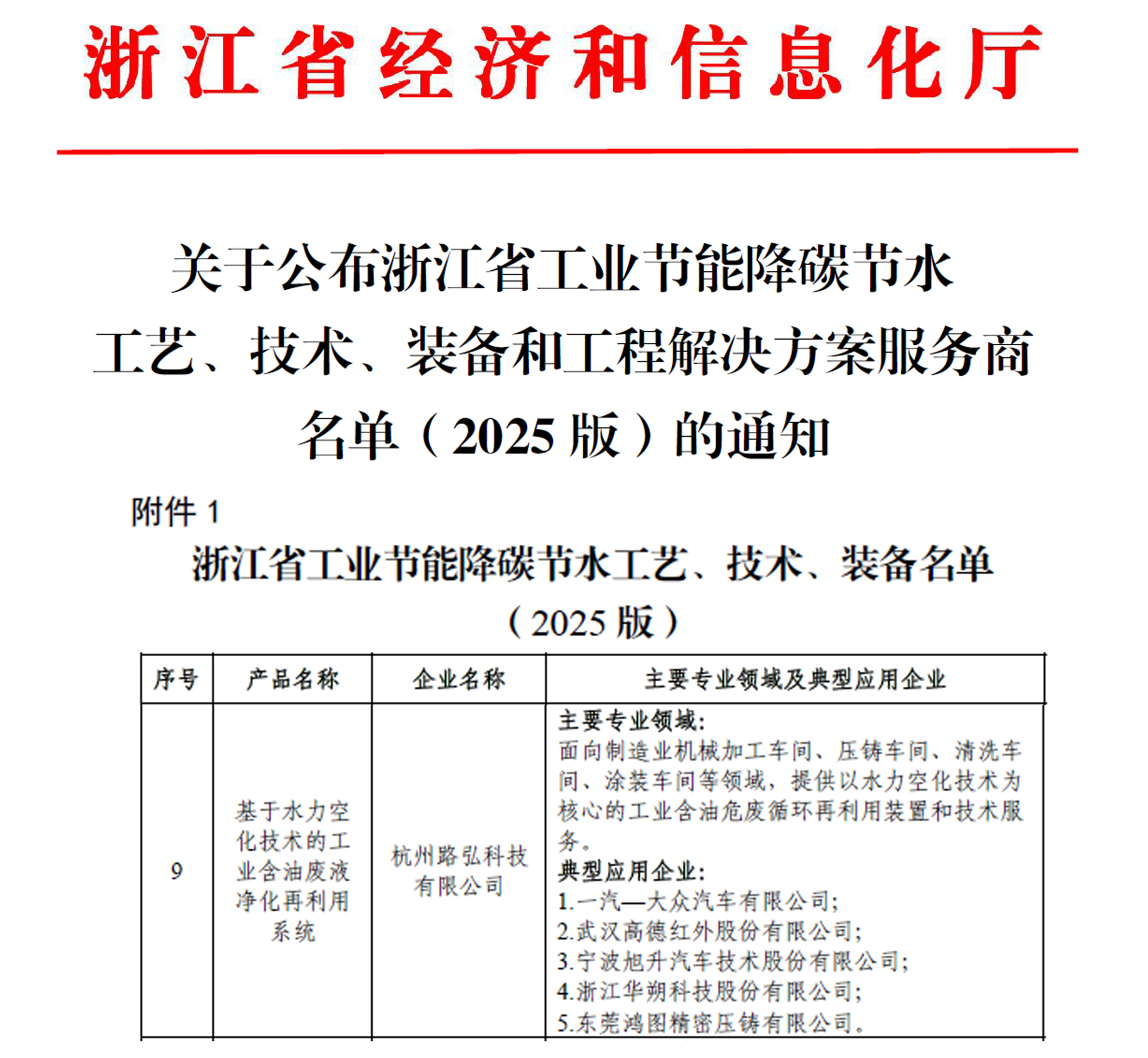 路弘科技技術(shù)入選2025年浙江省工業(yè)節(jié)能降碳節(jié)水技術(shù)名單